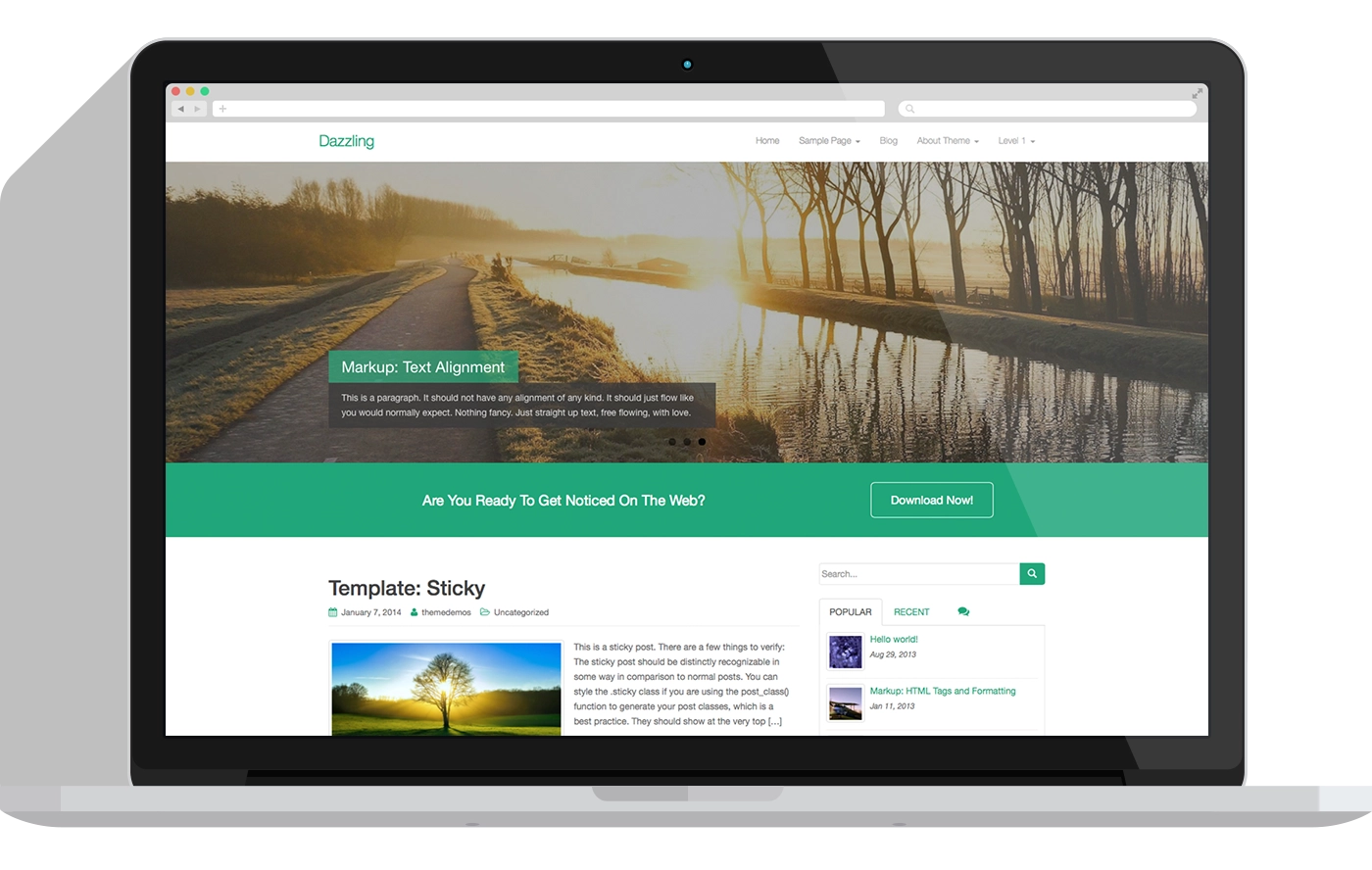 Dazzling is one of the most popular free WordPress blog themes out there. It is one of the few blog WordPress themes with a slider and that has helped to become it so popular.