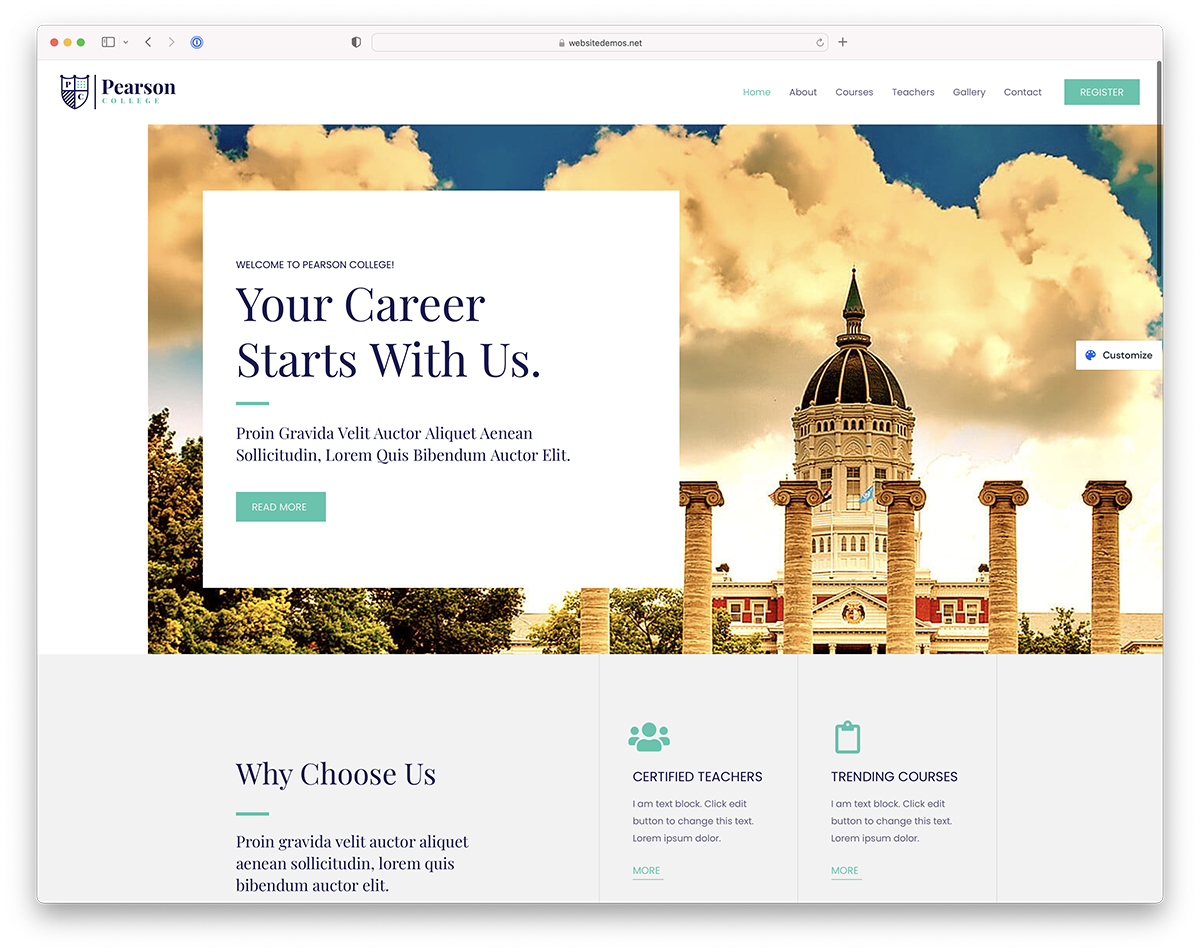 Amazing demo websites and template pages make your work fast and easy. Education websites will find plenty of convenient options to meet their needs.