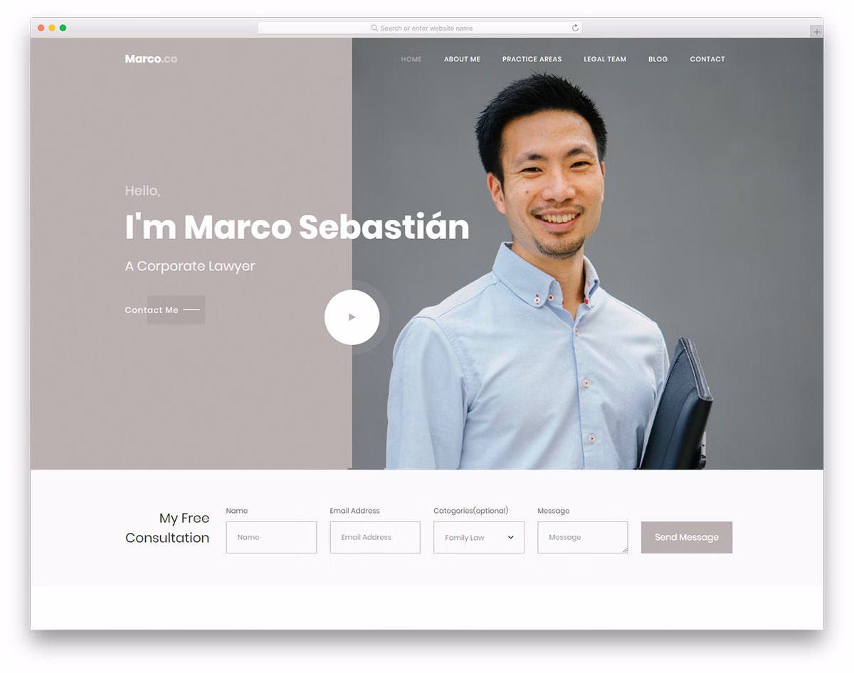With a free lawyer website template like Marco 2, you can bring your business to an entirely new degree. It is a refreshing, contemporary and easy to use site canvas that easily adjusts to lawyers and attorneys who are in need for something more. With a prominent online presence, you can grab the attention of even more clients and scale accordingly. Get them to know you better, tell the world what you excel at and even share your successful cases. On top of that, with the free consultation form, they can get in touch with you, asking for assistance.