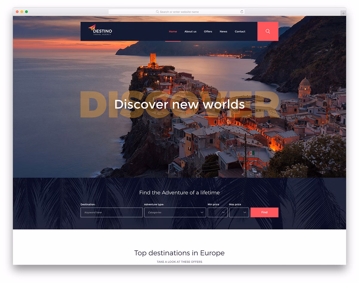 Destino travel agency website template expresses itself uniquely and elegantly for your benefit. It ensures that your agency promotes itself online with a gripping website that hooks customers instantly. Assist people in discovering new worlds and turn them into returning customers.