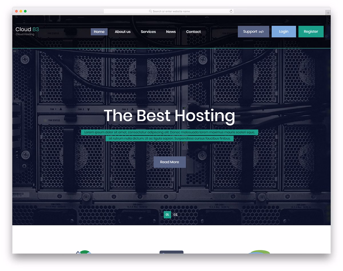 Cloud83 is a cloud hosting website template with a modern, clean and professional web design. Pretty much, you can use Cloud83 for all types of hosting projects you run to help amateurs and professional get online and start something fresh. Cloud83 is based on Bootstrap Framework to ensure your online presence is mobile-ready and cross-browser-compatible.